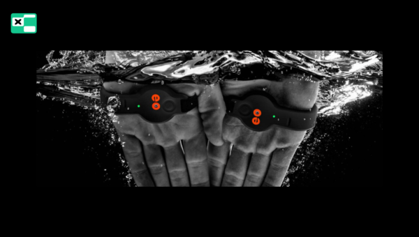 To para sensorów ciśnieniowych osadzonych w opaskach zakładanych na dłoń — urządzenie siedzi w zagłębieniu dłoni (palm), a elastyczna opaska otacza grzbiet ręki. Sensor rejestruje różnicę ciśnień między dłonią a grzbietem ręki — a to właśnie ta różnica generuje propulsję w pływaniu.